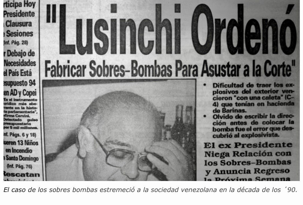 Los “Sobres Bomba” fueron ordenados por el expresidente Jaime Lusinchi, con el único interés de amedrentar a los magistrados del TSJ y lograr que se abstuvieran de emitir un dictamen judicial en su contra por hechos de corrupción cometidos durante su ejercicio como presidente de la República.