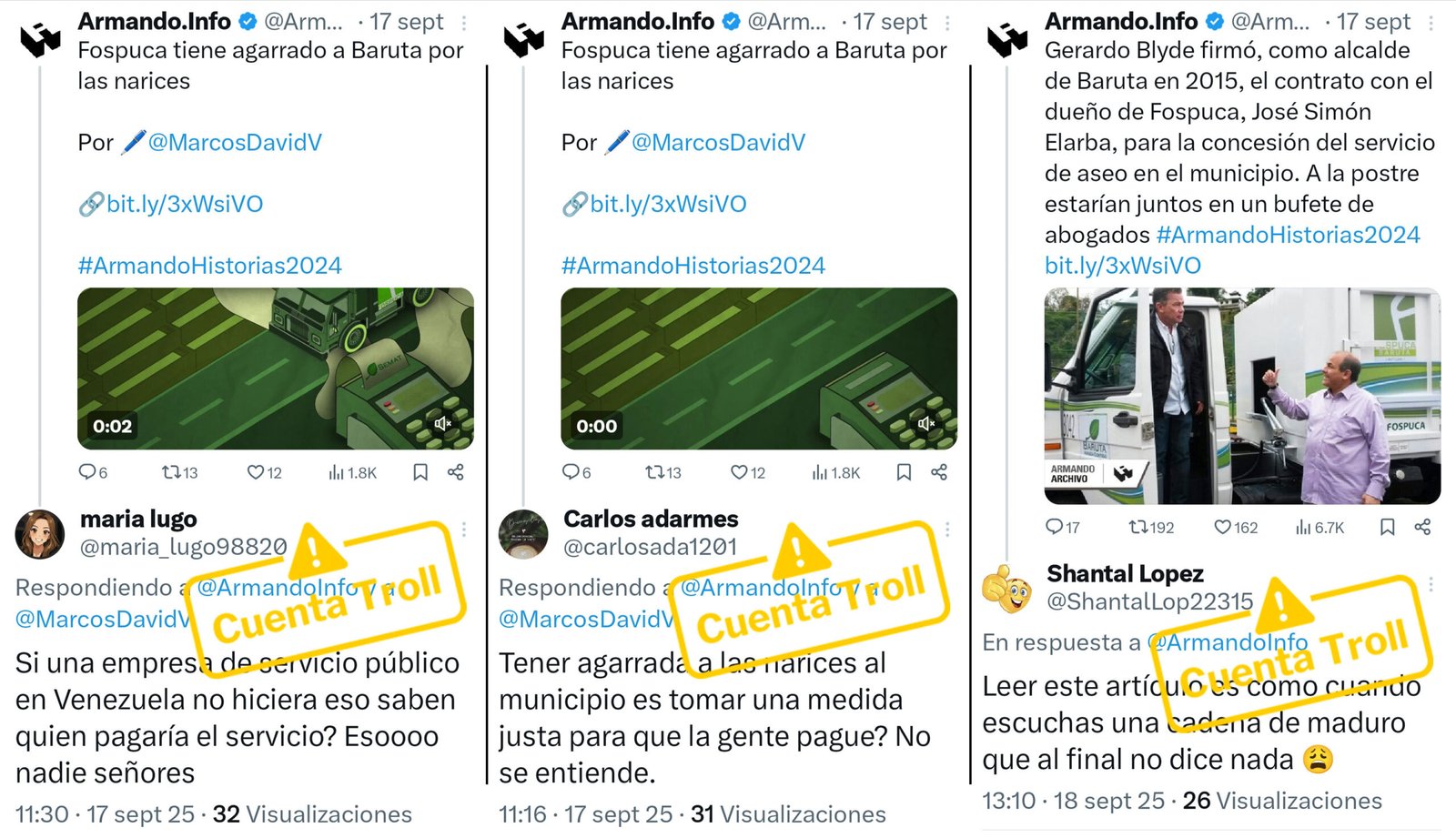 La campaña de estigmatización comenzó cuando un artículo de Correo del Caroní fue atacado por cuentas inauténticas pro-Fospuca en X y escaló con desinformación difundida por una red de falsos noticieros en Instagram