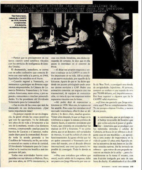 ⁃ El dejar sus propios negocios y entrar a trabajar en la CANTV es otro filón importante de su vida. Allí se produce un nuevo escándalo, por aquello de la Ericsson. Aparte de que se ha dicho que desde ese puesto privilegiado pudo prestar ciertos servicios a CAP. Hubo una acusación concreta: un negocio con esa transnacional de equipos de comunicación, en vista de que sus empresas tenían supuestos vínculos con la firma.